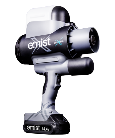 The EPIX360 is the most effective handheld electrostatic disinfectant sprayer in the world. Built to work, this cordless sprayer is powerful, durable, and provides breakthrough application performance – more coverage, less waste, and better results. Simply fill the 8-ounce tank with a safe EPA-approved water-soluble disinfectant, pull the trigger, and the EPIX360 goes to work laying down an even, uniform and wraparound layer of germ-killing power up to 4,000 high-touch point sq.ft.